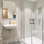 Oltre a rilevatori di fumo per una maggiore sicurezza, l'alloggio è dotato di finestre insonorizzate, nonché di un divano. Grazie alla TV a schermo piatto con canali satellitari, gli ospiti possono godersi il tempo libero. Il bagno è dotato di un bagno alla francese e una doccia, oltre che di asciugacapelli e teli da bagno.